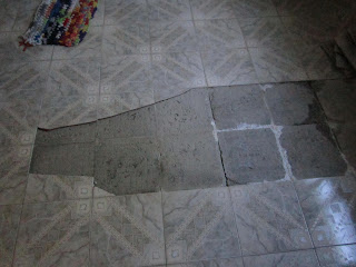 Last night me and Logan slept in the living room because my dad didn't know if a big hole would appear. Today mom, Logan,and dad cracked the tile. I'm the only one who has not cracked it....yet. I guess that doesn't matter because people are coming to fix the tile. That was a little bit scary.